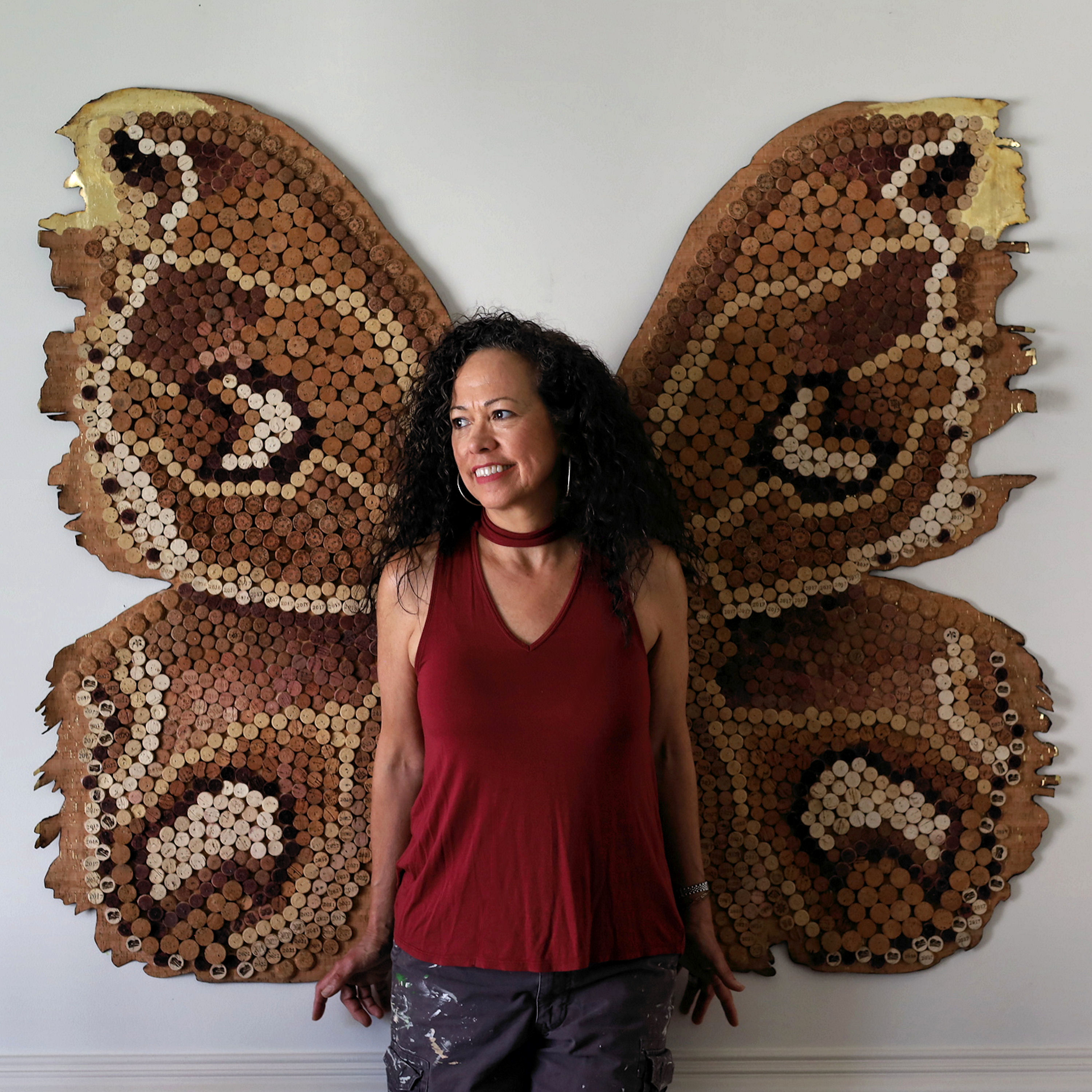 Purcellville is set to host a captivating blend of art and culture at this year’s Food & Wine Festival on July 19th, where local artist Patricia Maria Taylor Holz, known for her creative endeavors under PTH Visual Arts, will debut an extraordinary piece titled “Drunk Moth: A Selfie Wings Installation.” This innovative artwork, crafted from naturally stained wine corks sourced from local Loudoun wineries—including 868 Estate Vineyards, The Barns at Hamilton Station, Firefly Cellars, Stone Tower Winery, Otium Cellars, Williams Gap Vineyard, 8 Chains North Winery, Two Twisted Posts Winery, and many more—offers festival-goers a unique opportunity to engage with art in an interactive way.