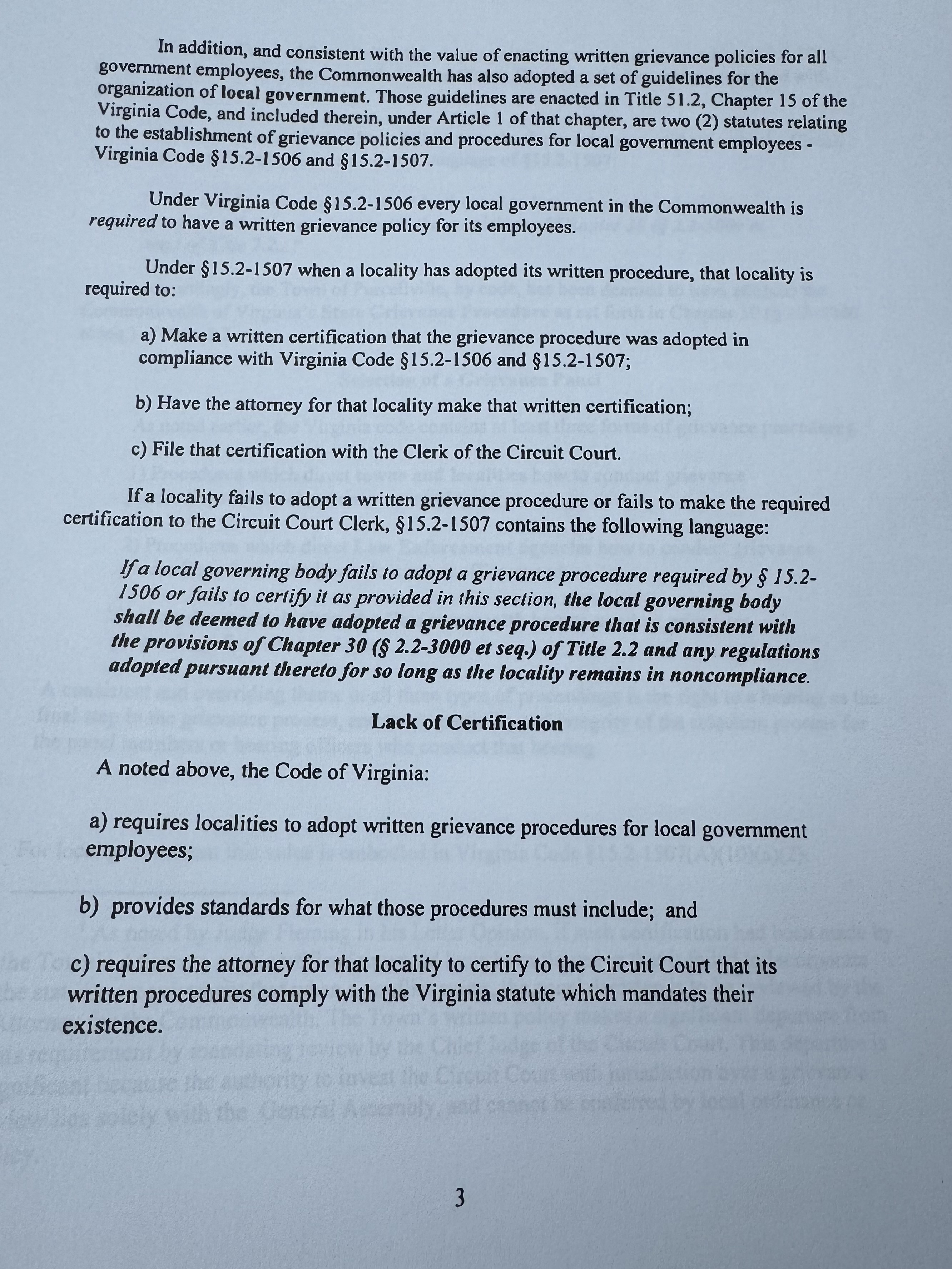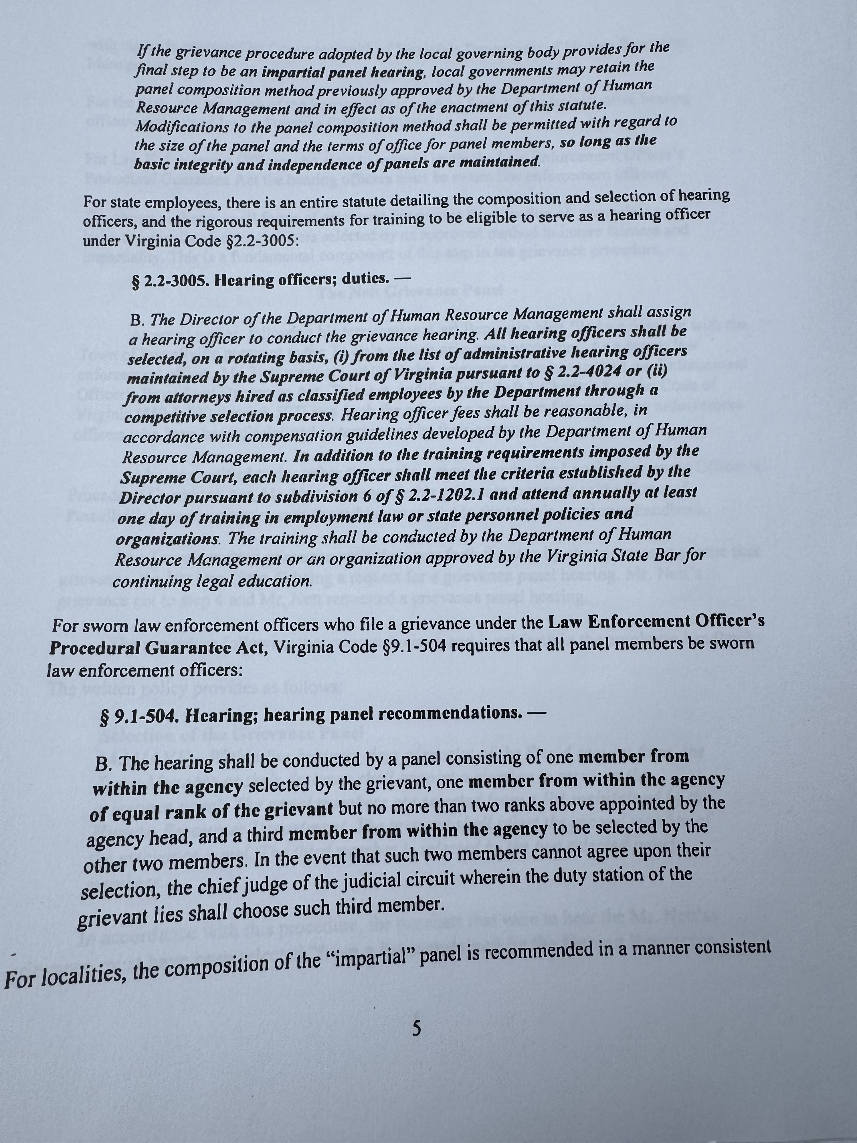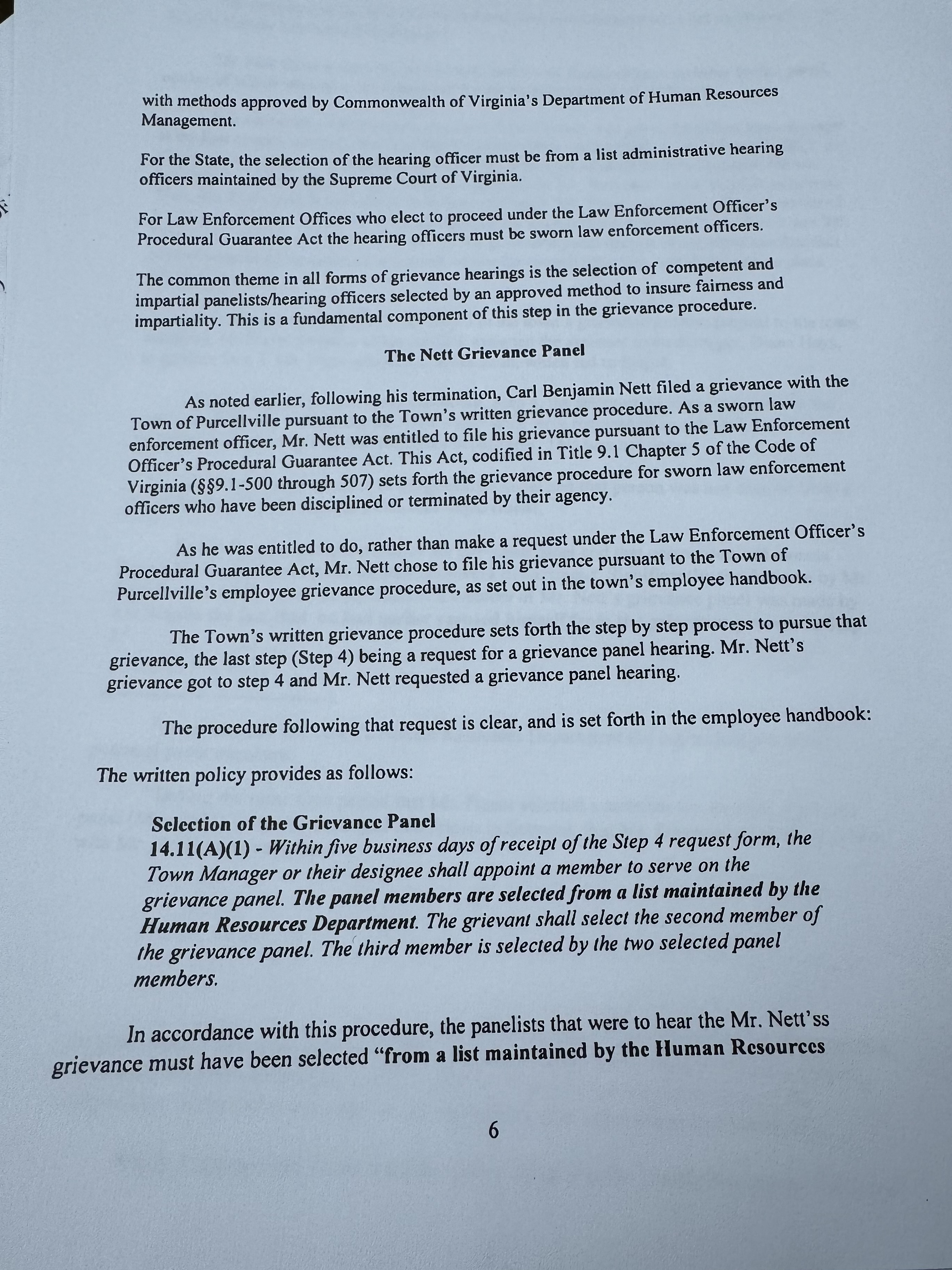 Upon review, a Special Prosecutor found that the grievance panel did not adhere to the required selection process, as members were not chosen from a designated list, compromising the impartiality expected under both town and state procedures. This led the Loudoun Circuit Court to dismiss the town’s appeal based on jurisdictional grounds, emphasizing further procedural concerns.