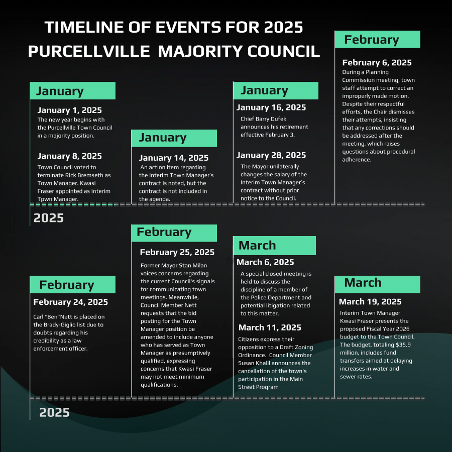 Timeline of Events for the Purcellville Majority Town Council