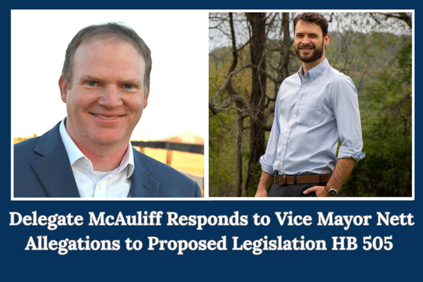 Delegate McAuliff Responds to Vice Mayor Nett Allegations to Proposed Legislation HB 505