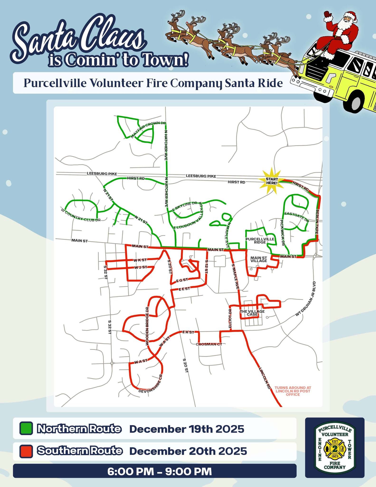 Purcellville residents can once again look forward to a beloved holiday tradition as Santa Claus returns to town this December for his annual ride through local neighborhoods aboard a fire truck.